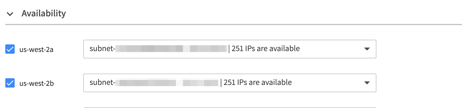 - Select a subnet for the availability zone.