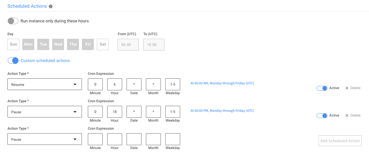• You can choose one of two options – predetermined Running hours, or custom scheduled actions.